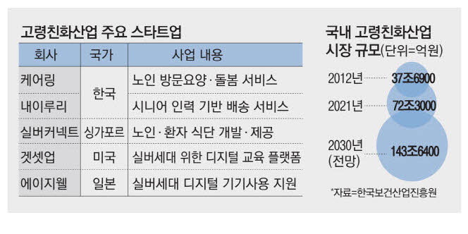 ÀÌ °°Àº Æ®·»µå´Â À̸¥¹Ù '°í·ÉģȻê¾÷'ÀÇ °¡ÆÄ¸¥ »ó½Â¼¼¿¡ µû¸¥ °ÍÀ¸·Î Ç®À̵ȴÙ. 25ÀÏ Çѱ¹º¸°Ç»ê¾÷ÁøÈï¿øÀÇ '°í·ÉģȻê¾÷ Á¦Á¶, ¼ºñ½º¾÷ ½ÇÅÂÁ¶»ç ¹× ºÐ¼®' º¸°í¼¿¡ µû¸£¸é ±¹³» °í·ÉģȻê¾÷ÀÇ ½ÃÀå ±Ô¸ð´Â 2012³â 37Á¶6900¾ï¿ø¿¡¼ 2021³â 72Á¶3000¾ï¿øÀ¸·Î 10³â »õ µÎ ¹è °¡±îÀÌ ¼ºÀåÇß´Ù. 2030³â¿¡´Â 143Á¶6400¾ï¿øÀ¸·Î Ä¿Áú Àü¸ÁÀÌ´Ù. 'ÂøÇÑ »ç¾÷'Àº µ·ÀÌ µÇÁö ¾Ê´Â´Ù´Â Æí°ßÀÌ »ç¶óÁö°í ÀÖ´Â ¼ÀÀÌ´Ù.